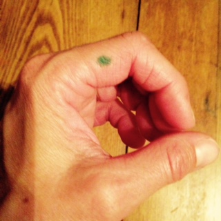*I used to try to draw a squirrel on the finger, but now just draw the hole that he/she lives in. (below I’ve drawn the squirrel with a green dot)