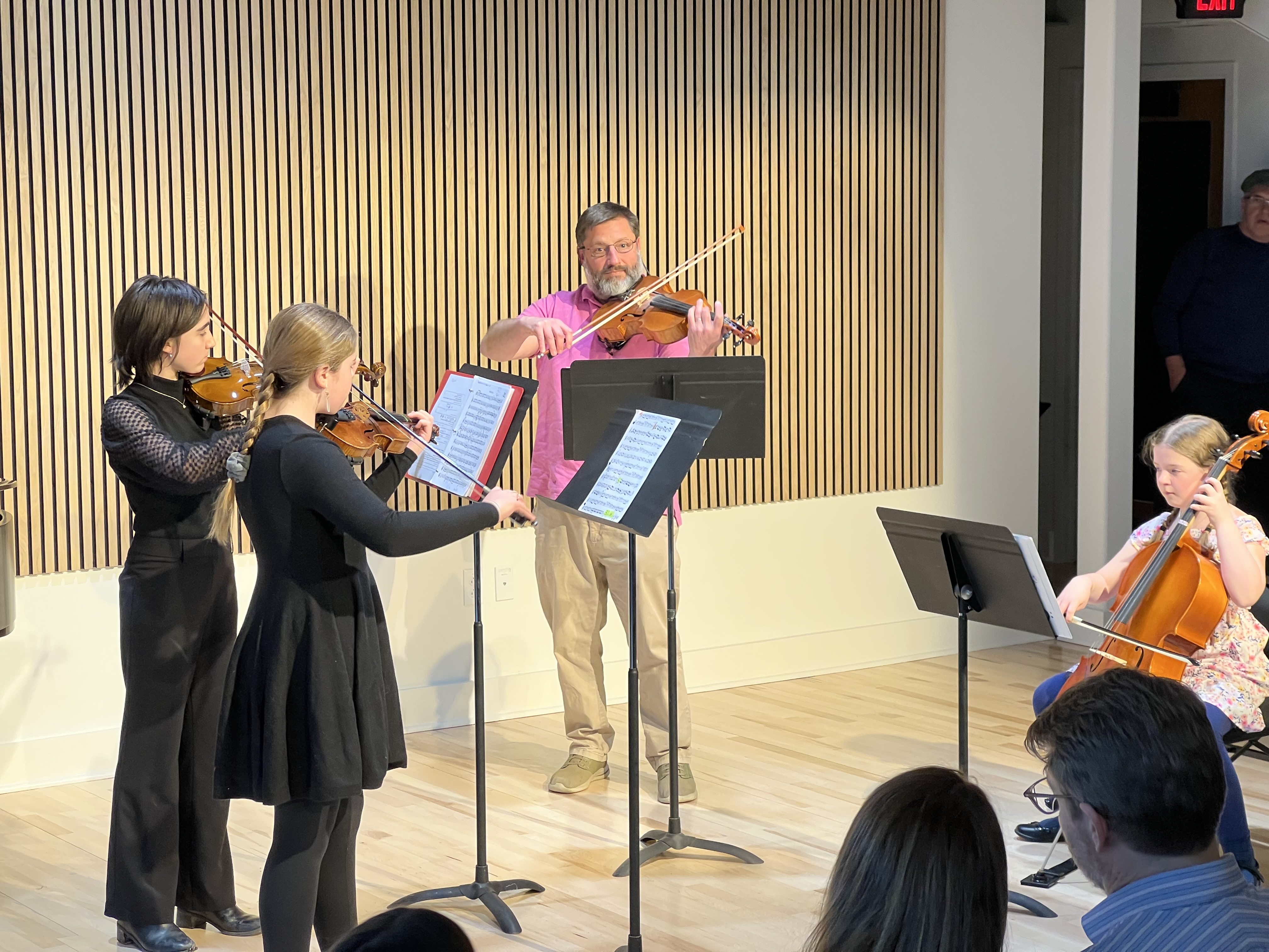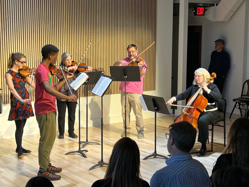 MCMC’s Community String Ensembles is a tuition free program that facilitates intergenerational chamber music for string players of all ages and ages. Community members from ages 5-99 are placed in small ensembles of similar playing ability and work together to explore chamber music on Friday afternoons.